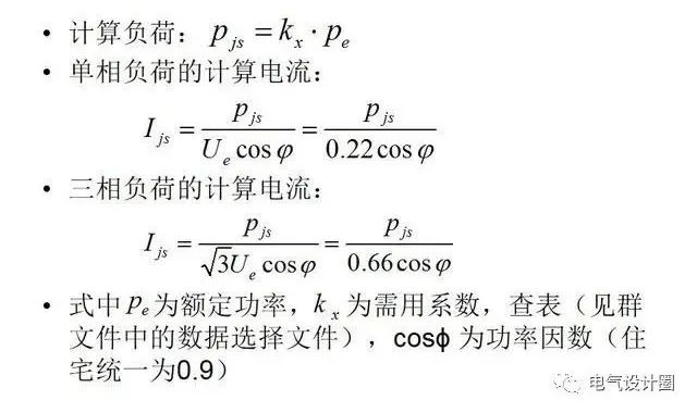 低壓配電系統(tǒng)設(shè)計(jì)的原則:設(shè)計(jì)應(yīng)結(jié)合實(shí)際情況,積極采用先進(jìn)技術(shù),正確掌握設(shè)計(jì)標(biāo)準(zhǔn);對(duì)于供電安全,節(jié)約能源、環(huán)境保護(hù)等重要問題采取切實(shí)有效的措施;設(shè)備布置要便于施工和維護(hù)管理;設(shè)備及材料的選擇要綜合考慮。那么低壓配電系統(tǒng)具體如何設(shè)計(jì)呢?請(qǐng)繼續(xù)往下看。(1)低壓配電系統(tǒng)的設(shè)計(jì)步驟在設(shè)計(jì)建筑電氣供配電系統(tǒng)時(shí),先先應(yīng)根據(jù)建筑物情況確定負(fù)荷等級(jí);然后確定供配電方案;確定各種用電設(shè)備功率,在此基礎(chǔ)上進(jìn)行用電負(fù)荷計(jì)算,并選擇各種配電控制設(shè)備和配電導(dǎo)線。(2)負(fù)荷分級(jí)查找閱讀相關(guān)規(guī)范確定建筑物的負(fù)荷等級(jí)般現(xiàn)有的畢業(yè)設(shè)計(jì)內(nèi)容,若做多層住宅電氣設(shè)計(jì)的基本為三級(jí)負(fù)荷,對(duì)供電電源無特殊要求;若所做的為高層住宅,則根據(jù)情況可能存在二級(jí)負(fù)荷(基本為消防設(shè)備供電,即應(yīng)急照明、電梯等設(shè)備) ,根據(jù)規(guī)范要求應(yīng)為雙電源供電,在線路末端采用雙電源互投裝置進(jìn)行配電。三級(jí)負(fù)荷為住宅內(nèi)其他負(fù)荷。(3)配電方案查找閱讀相關(guān)規(guī)范明確低壓配電的形式一般現(xiàn)有的畢業(yè)設(shè)計(jì)內(nèi)容均為住宅電氣設(shè)計(jì),故低壓配電的形式基本為樹干式與放射式相結(jié)合的方式,至于具體的含義,請(qǐng)參見相關(guān)的材料。(4)負(fù)荷計(jì)算的方法負(fù)荷計(jì)算的方法有單位建筑面積安裝功率法、需用系數(shù)法、二項(xiàng)式法和利用系數(shù)法等。住宅一般多采用需用系數(shù)法。商業(yè)網(wǎng)點(diǎn)一 般采用單位面積法。(5)住宅建筑負(fù)荷計(jì)算標(biāo)準(zhǔn)居民住戶用電負(fù)荷設(shè)計(jì)標(biāo)準(zhǔn):商業(yè)網(wǎng)點(diǎn)容量:每平方米不低于100wo先立車庫容量:按2kw設(shè)計(jì)。(6)分戶箱的相關(guān)要求?住宅內(nèi)分戶箱的回路設(shè)置:照明回路、普通插座回路、空調(diào)插座回路、時(shí)房插座回路及衛(wèi)生間插座回路。應(yīng)根據(jù)戶型的情況増?jiān)O(shè)空調(diào)插座回路。? 注意:空調(diào)插座功率大,故放于客廳的柜式空調(diào)插座應(yīng)先門 一個(gè)回路,放丁臥室等位置的壁掛式空調(diào)對(duì)2個(gè)插座一個(gè)回 路(數(shù)量不能再多了)。? 注意:照明冋路至多帶25個(gè)燈,普通插座冋路至多帶40個(gè)。? 照明回路的導(dǎo)線選擇:BV-2*2.5-PC20-CC。? 插座回路的導(dǎo)線選擇:BV-3*4-PC25-FC,插座冋路要求帶漏電保護(hù)。? 入戶線較小截而積不小J 10mm2。(7)分戶箱的相關(guān)要求? 一般采用單相計(jì)量方式,但居民每戶容量 大于巾Okw的采用三相計(jì)量方式;網(wǎng)點(diǎn)每戶 大于5kw的采用三相計(jì)量方式。?低壓三相負(fù)荷電流大于50A時(shí)要采用電流互感器方式計(jì)量。? 走廊燈等公用設(shè)備應(yīng)設(shè)計(jì)量點(diǎn),單先計(jì)量。(8)需用系數(shù)法的基本公式(9)分戶箱的負(fù)荷計(jì)算