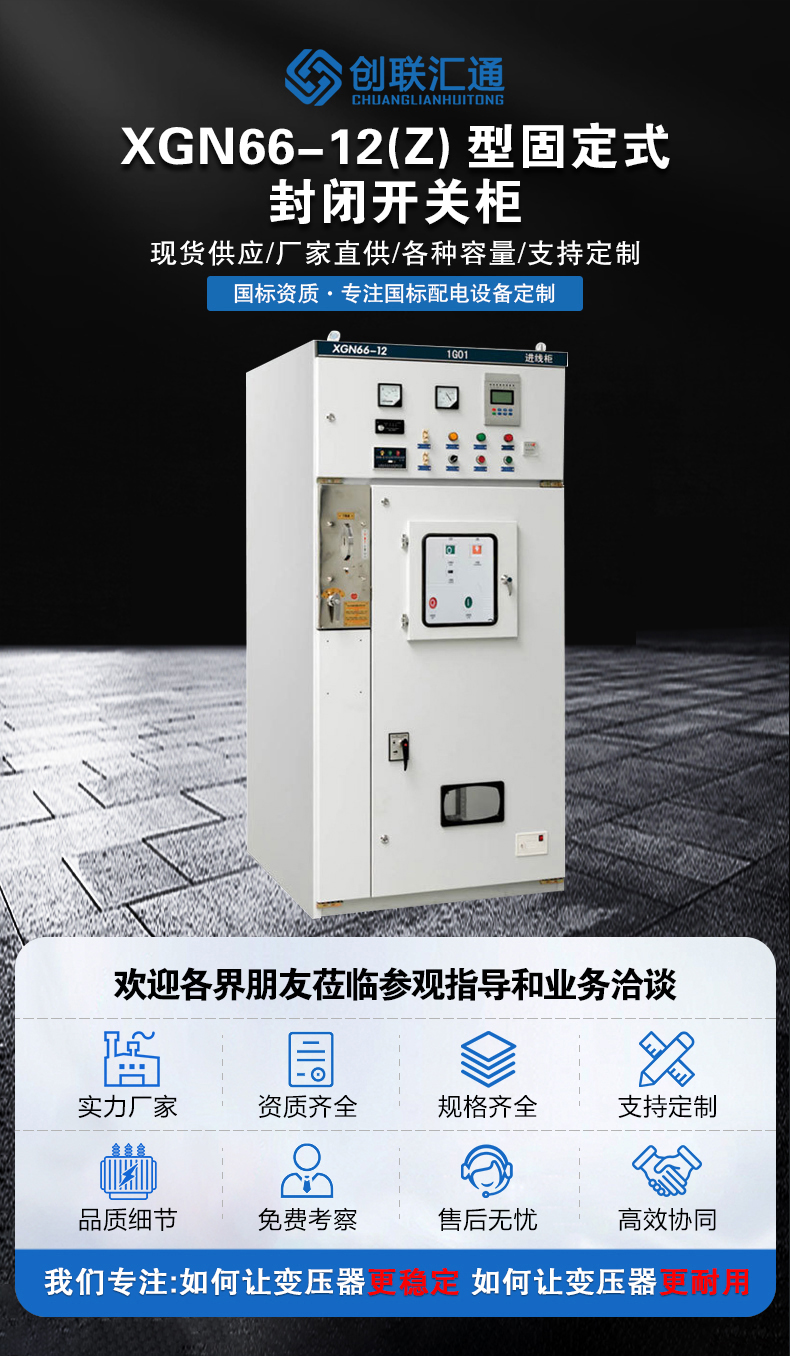 XGN66-12(Z)箱型固定式金屬封閉開(kāi)關(guān)設(shè)備(簡(jiǎn)稱開(kāi)關(guān)柜)用于3、6、10kV三相交流50Hz系統(tǒng)中作為接受與分配電能之用。其母線系統(tǒng)為單母線(可派生出單母線帶旁路和雙母線)結(jié)構(gòu)。