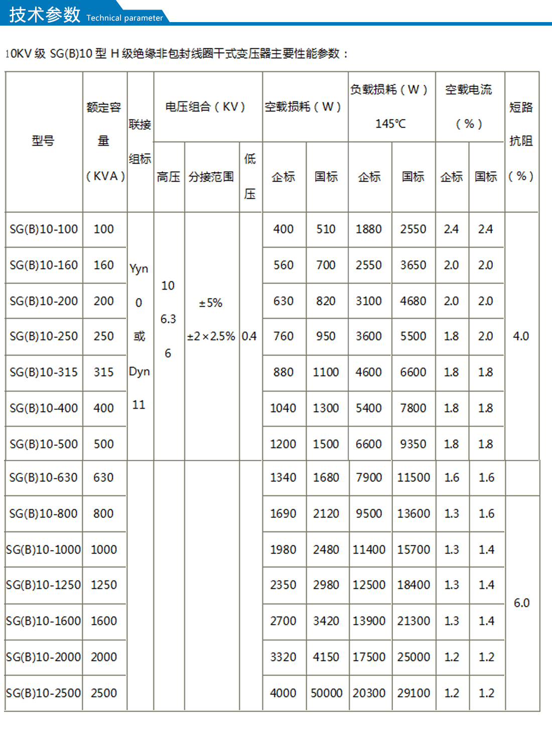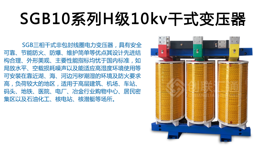 SG(B)10系列H級絕緣干式變壓器采用優(yōu)質(zhì)環(huán)保材料,先進(jìn)的生產(chǎn)檢測設(shè)備按嚴(yán)格的工藝生產(chǎn)而成,具有高性能、高安全、承受熱沖擊能力強(qiáng)等特點,它適用于防火要求高、負(fù)荷波動大以及污穢潮濕的惡劣環(huán)境中。如:高層建筑、商業(yè)中心、住宅小區(qū)、醫(yī)院、化工廠、核電站、船舶及其它安全性要求防火、防爆、防潮的配電網(wǎng)絡(luò)與工礦企業(yè)供配電系統(tǒng)等重要或特殊環(huán)境場所。