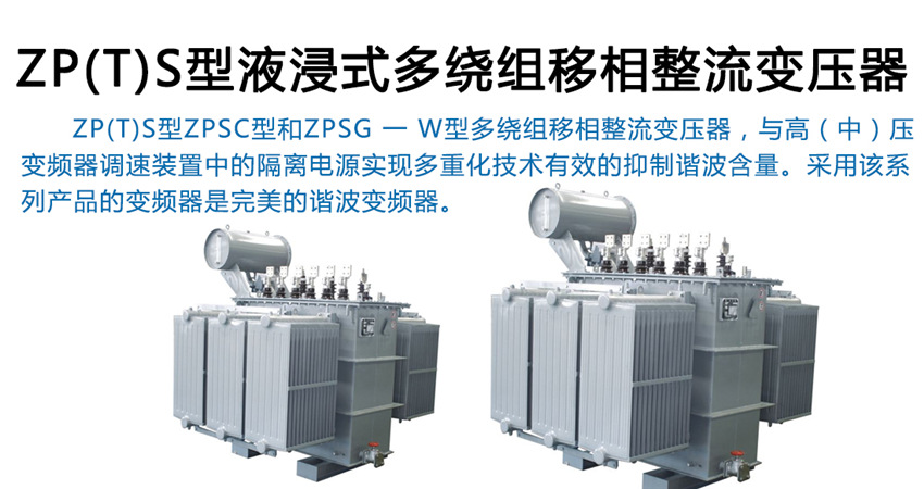 ZP(T)S型ZPSC型和ZPSG—W型多繞組移相整流變壓器,與高(中)變頻器調(diào)速裝置中的隔離電源實現(xiàn)多重化技術有效的抑制諧波含量。