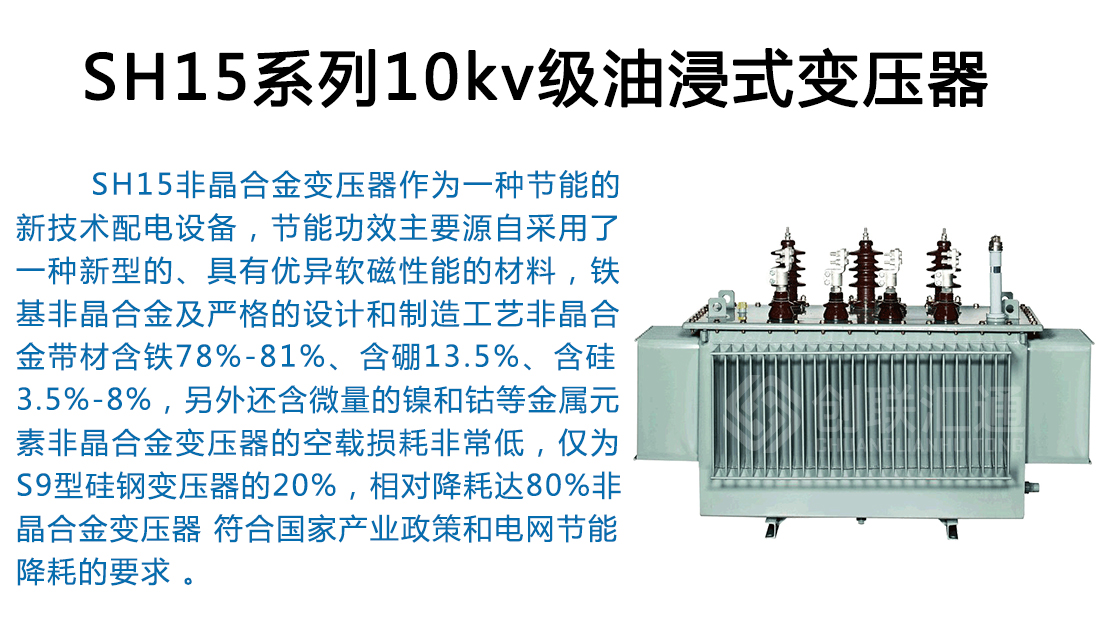 SH15非晶合金變壓器作為一種新一代節(jié)能產(chǎn)品,可以普遍適用于住宅小區(qū)、學(xué)校、工礦企事業(yè)單位以及社會公共設(shè)施??稍趹魞?nèi)(外)使用,容量在315kVA 及以下時(shí)可安裝在桿上,海拔高度不超過1000m。